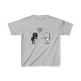 The kids heavy cotton tee is perfect for everyday use. The fabric is 100% cotton for solid colors. Polyester is included for heather-color variants. These fabrics are prime materials for printing. The shoulders have twill tape for improved durability. The collar is curl resistant due to ribbed knitting.