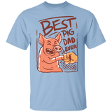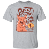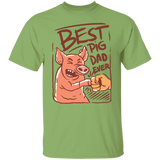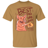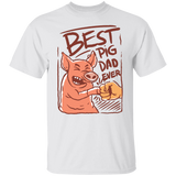 Amazing t-shirt design featuring a pig fist-bumping a person, with the quote "Best pig dad ever".