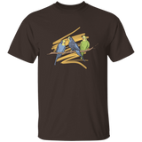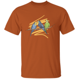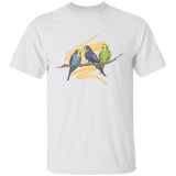 Birds on Branch T-Shirt Design featuring some colorful Budgie birds sitting on a nice natural branch. Great for nature and animal lovers!
