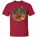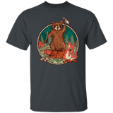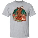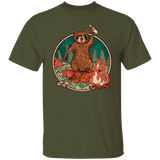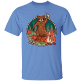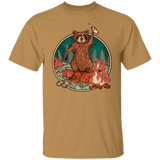 Funny T Shirt design that features a raccoon camping, drinking beer.