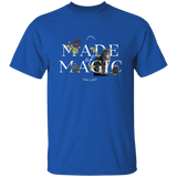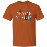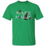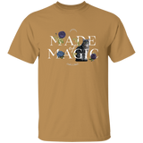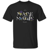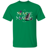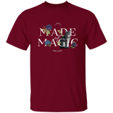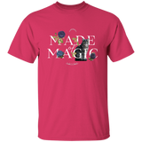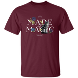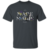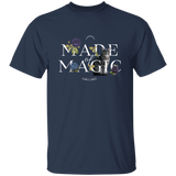 Awesomepsd t-shirt design featuring the quote "Made of magic" with floral elements in photographic style.