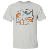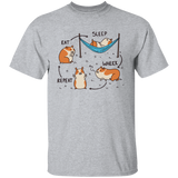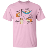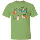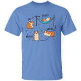 Amazing t-shirt design featuring the cycle of a guinea pig doing different activities, such as eating, sleeping, and wheeking