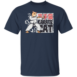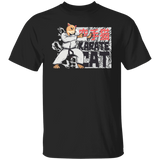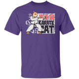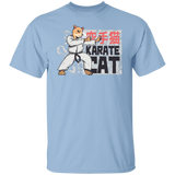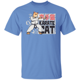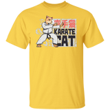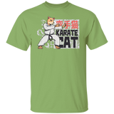 Funny t-shirt design featuring a cat doing karate, and the caption "karate cat".