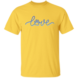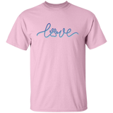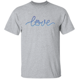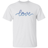 T-shirt design featuring the word LOVE in lettering style with the O with the shape of a dog's paw