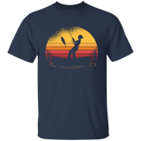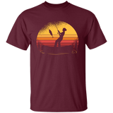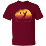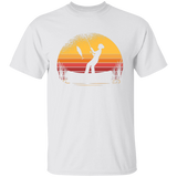 Awesome t-shirt design that includes a woman fishing during the sunset.