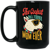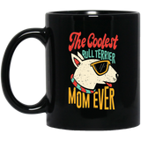 Cool Mug design featuring a Bull Terrier wearing sunglasses with the quote "Coolest Bull Terrier Mom Ever"