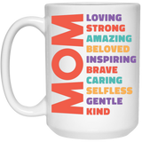 Our "MOM" Mug features adjectives like "loving," "caring," "strong," and "brave" to honor all the wonderful qualities that make your mom so special. Whether you're celebrating Mother's Day, her birthday, or just want to show her how much she means to you, this Mug is the perfect gift.